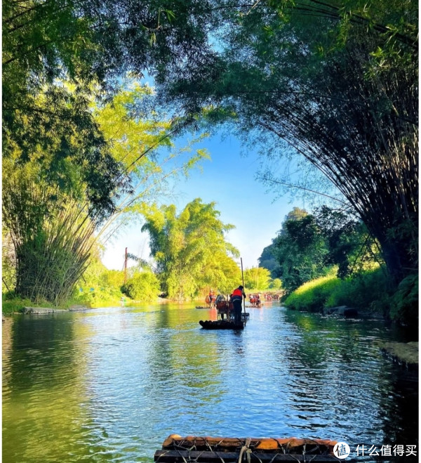 清晨乘竹筏从杨堤出发,晨雾如轻纱裹着群峰,江水清澈得能看见水底的鹅卵石。竹篙轻点水面,涟漪扩散间,两岸的凤尾竹弯腰拂过水面,惊起几只白鹭掠过江面,翅膀尖蘸起的水珠落在水面,碎了水中的山影。筏工说这是漓江的晨曲,没有喧嚣,只有水波与竹筏的私语。